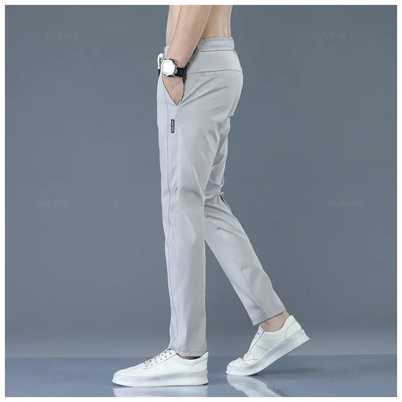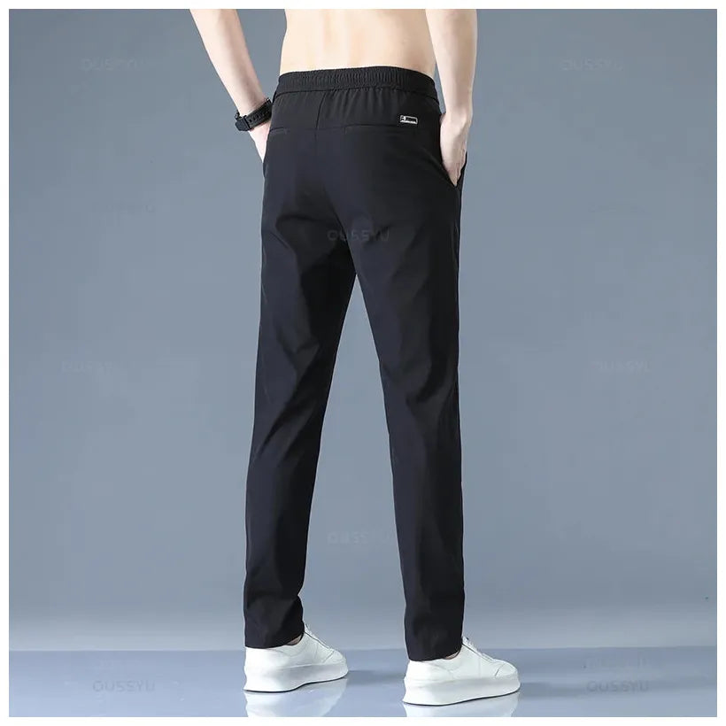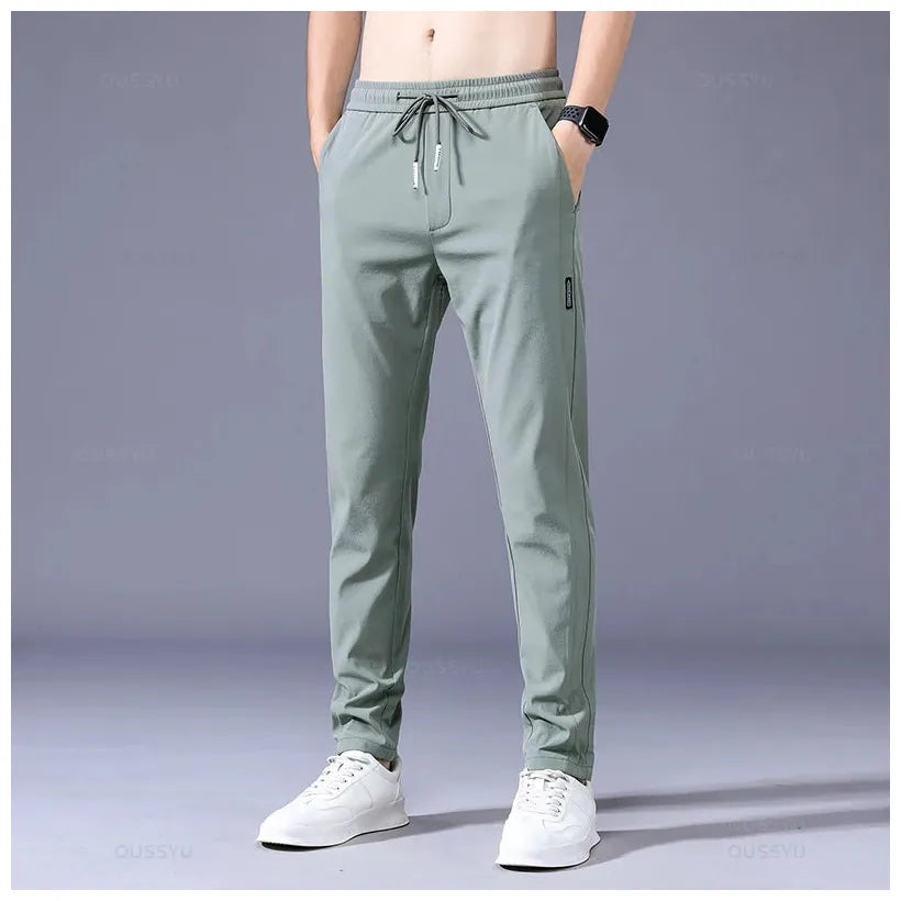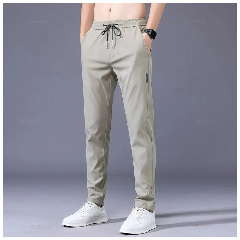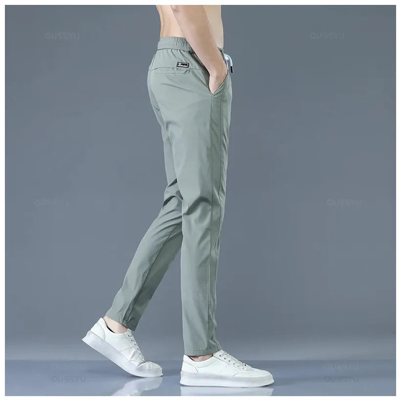 2025 Men's Trousers Spring Summer New Thin Green Solid Color Fashion Pocket Applique Full Length Casual Work Pants Pantalon