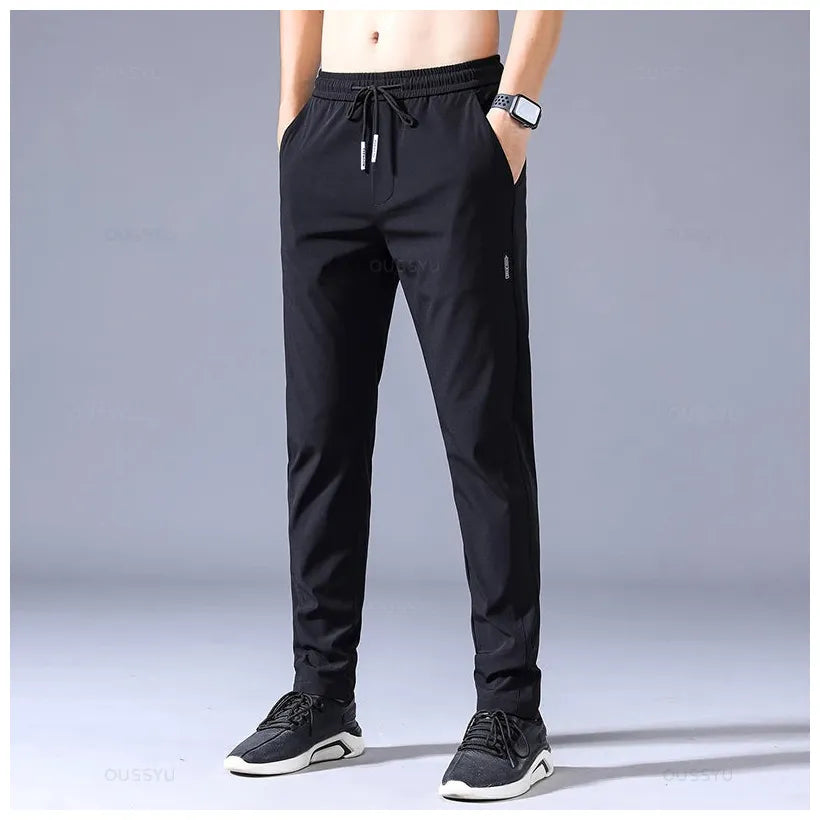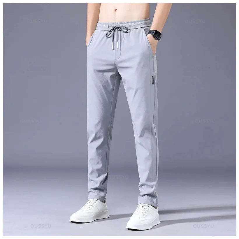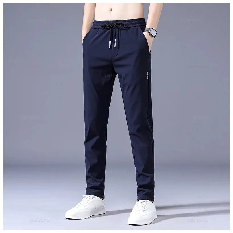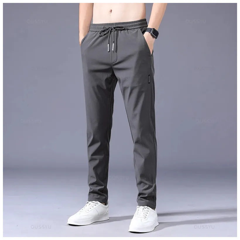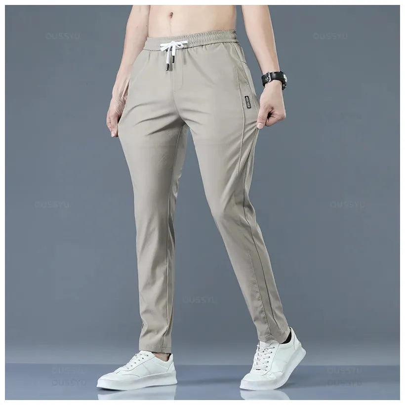 2025 Men's Trousers Spring Summer New Thin Green Solid Color Fashion Pocket Applique Full Length Casual Work Pants Pantalon