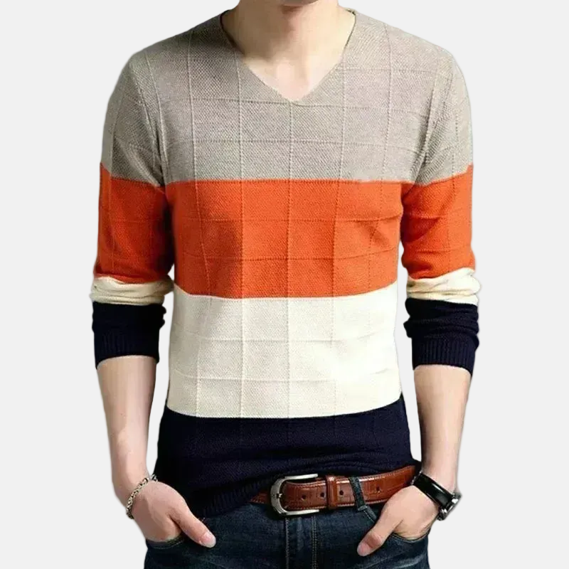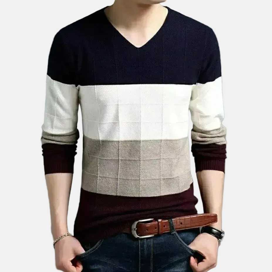 The subtle check pattern adds visual interest without overwhelming the design, making the sweater easy to pair with neutral pants or denim for casual wear.