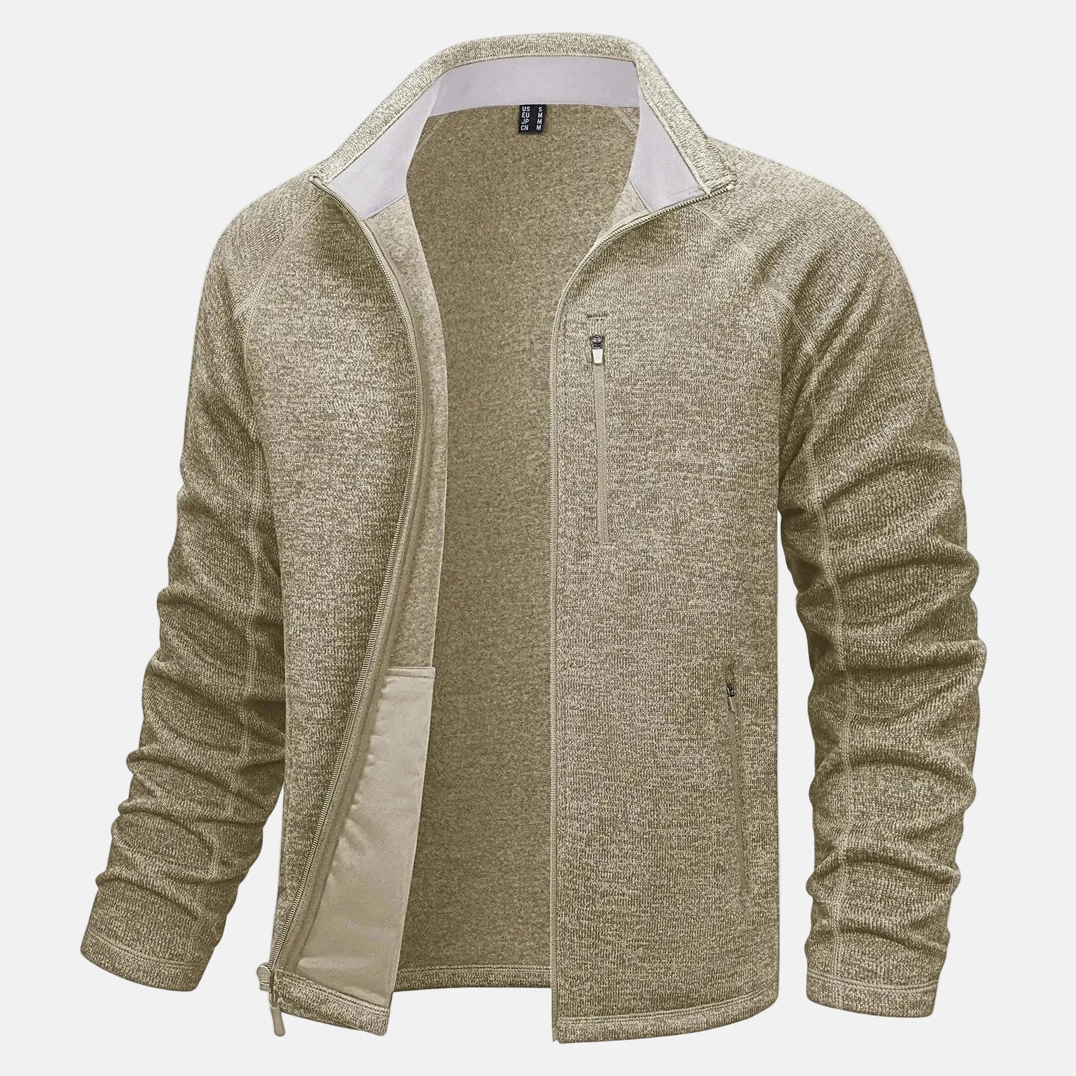 - Men’s knitted fleece jacket with full zip closure