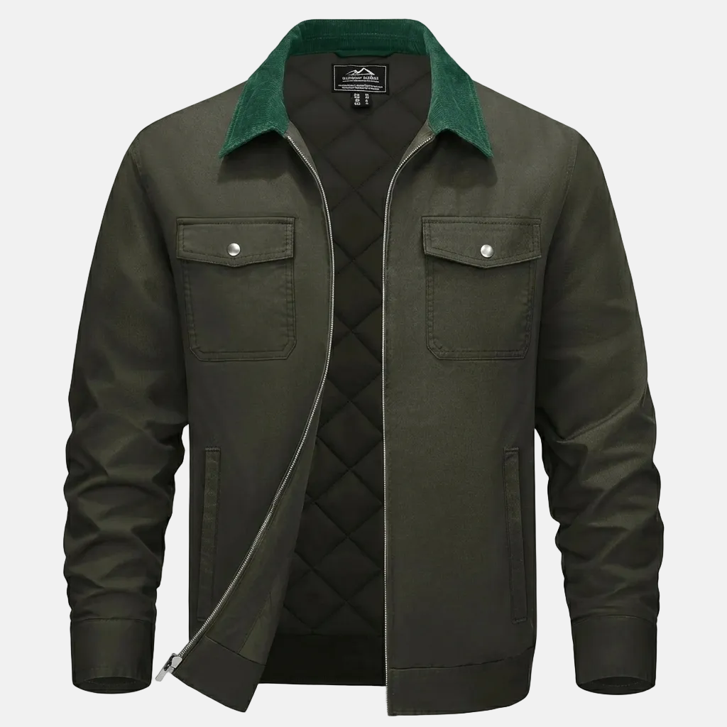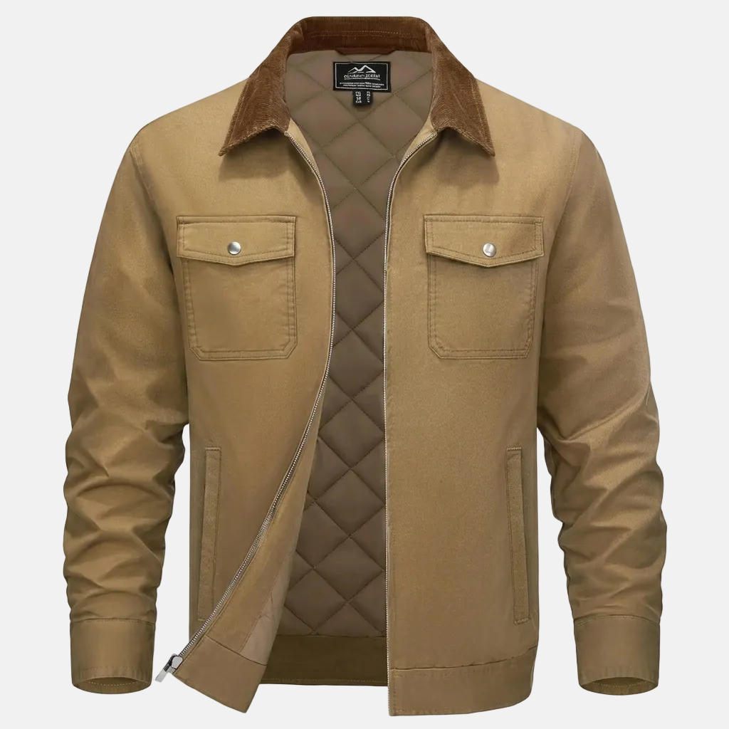 The quilted cotton filling provides insulation without unnecessary bulk, helping retain warmth while keeping the jacket comfortable and easy to move in throughout the day.