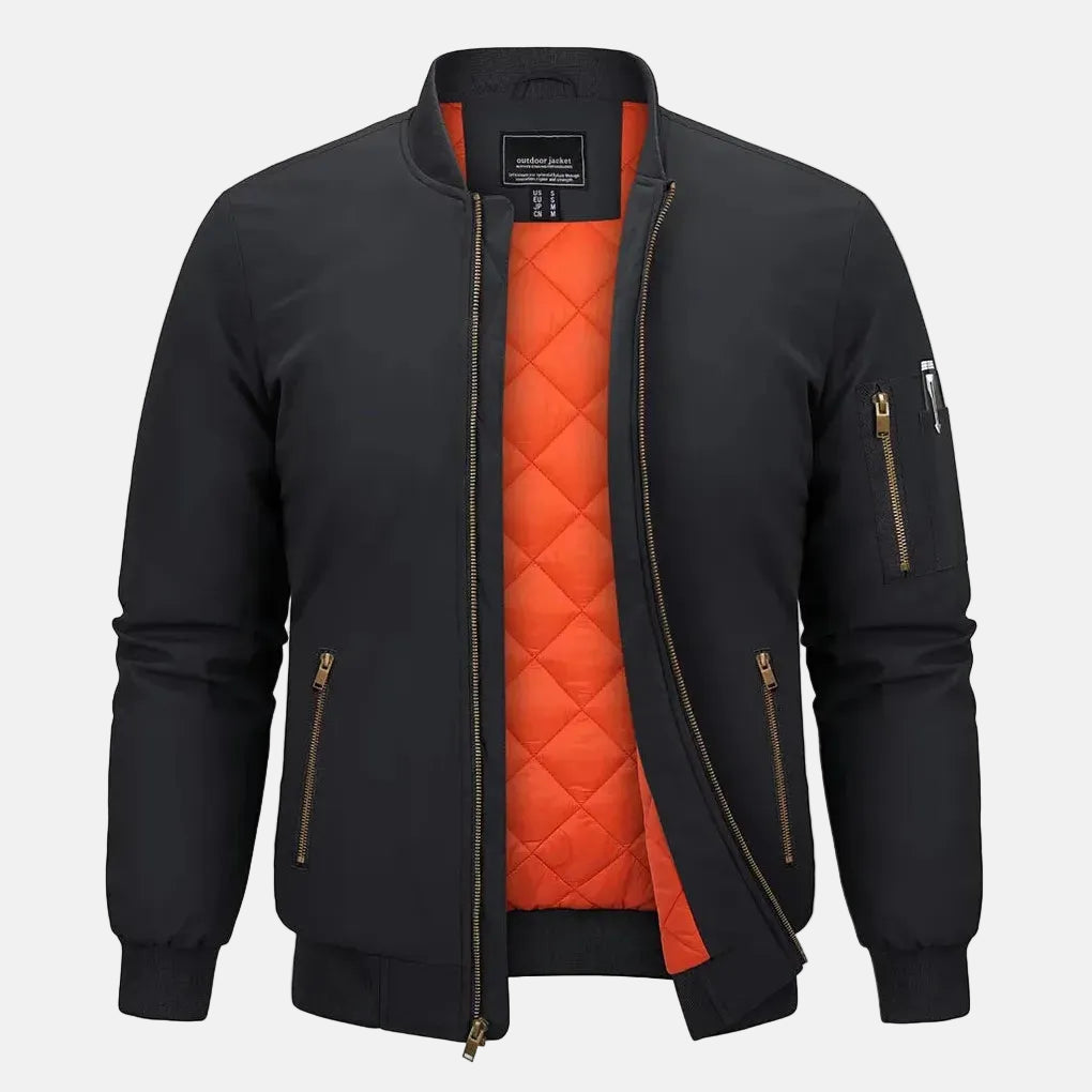 This men’s jacket features a classic bomber silhouette with a casual pilot-inspired design, ideal for everyday urban wear. Designed for transitional seasons, it combines structure, comfort, and functional protection for daily use.